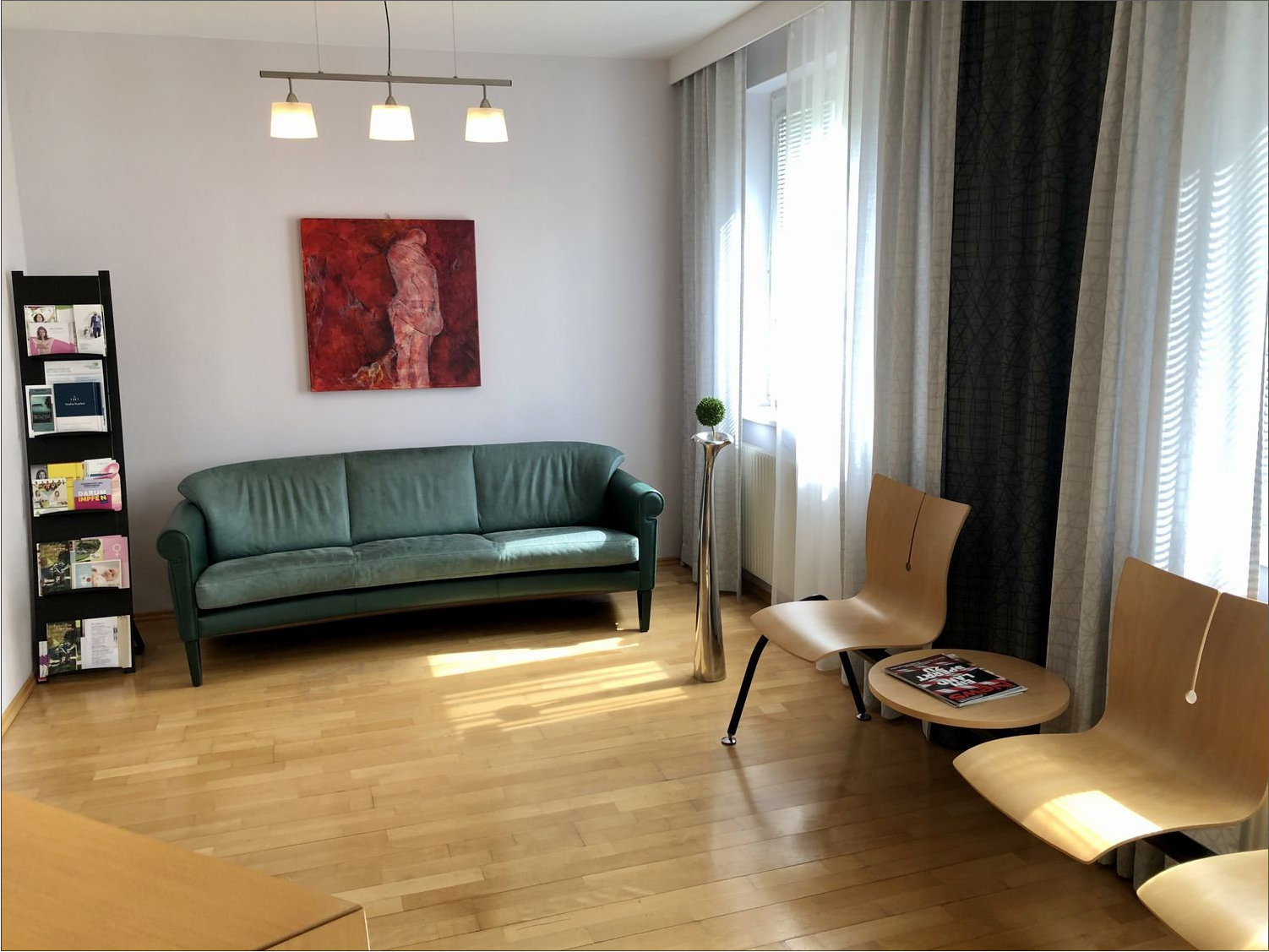 Die moderne, patientenfreundliche Praxis befindet sich im Ortskern von Bad Vöslau oberhalb der Kurapotheke und vis a vis vom Thermalbad. Die Praxis liegt im 1. Stock. Im Eingangsbereich begrüßt Sie meine Frau Gabriele Catomio, die für Ihre Betreuung zuständig ist.Allerdings sind Wartezeiten höchst selten, im Rahmen meiner Praxisorganisation können Sie mit bester Einhaltung der Termine rechnen. Die Praxisräumlichkeiten werden mit Dr. Ute Pfleger, Facharzt Geburtshilfe und Frauenheilkunde gemeinsam genutzt.