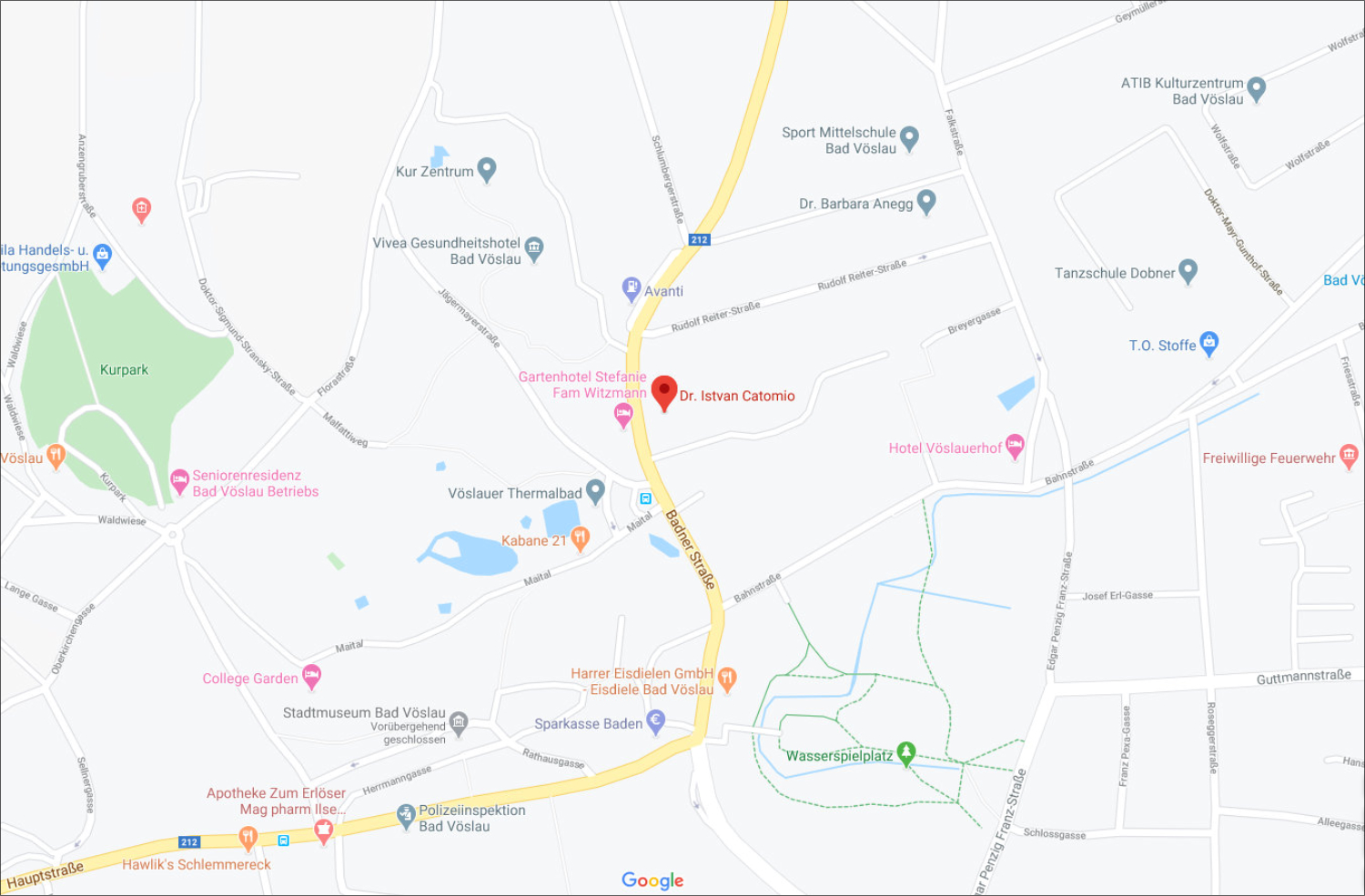 Ich bemühe mich jederzeit für Sie erreichbar zu sein!Dazu verwenden Sie meine Mobilnummer 0664 10 36 186.Unsere exakte Praxisanschrift in Ebreichsdorf lautet:Ordination Dr. CatomioWienerstr. 35/5/2A-2483 EbreichsdorfSie können auch in unsere Ordination in Bad Vöslau kommen. Unsere exakte Praxisanschrift in Bad Vöslau lautet:Ordination Dr. CatomioBadner Straße 12/4A-2540 Bad Vöslau